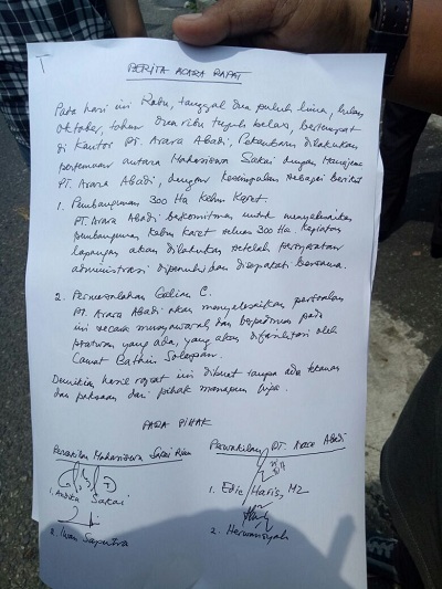 Di Demo Warga Sakai, PT. Arara Abadi Dialoq dan Sepakati Hal ini..