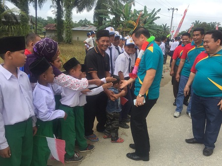 Masyarakat desa Simpang Raya, Kecamatan Singingi Hilir Sangat Antusias sambut kedatangan Wakil Bupati Kuantan Singingi H Halim.