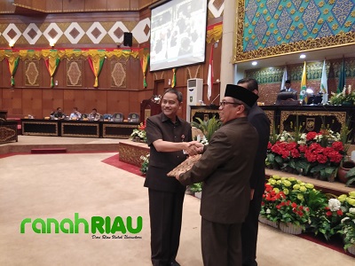 (Ket Foto : Penyerahan Pengesahan Raperda dari DPRD Riau dengan Pemprov Riau)